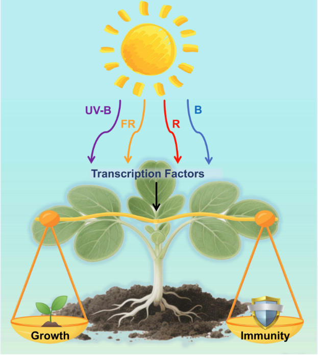 植物抗病免疫机制的解析是抗病作物育种和国家粮食安全保障的重要科学基础。光受体作为植物感知环境信号的核心组分,其不仅参与植物生长发育的精细调控,还在植物与病原菌的互作中发挥关键信号枢纽作用。研究发现,光受体通过一系列下游的光信号调控元件,实现了光信号与免疫信号的整合,使植物能在有限的资源下巧妙地协同生长与免疫的平衡。因此,深入解析光信号通路在植物免疫应答中的调控作用,不仅对于理解植物的光适应性进化及抗病免疫机制具有重要意义,对于未来的抗病作物育种也至关重要。