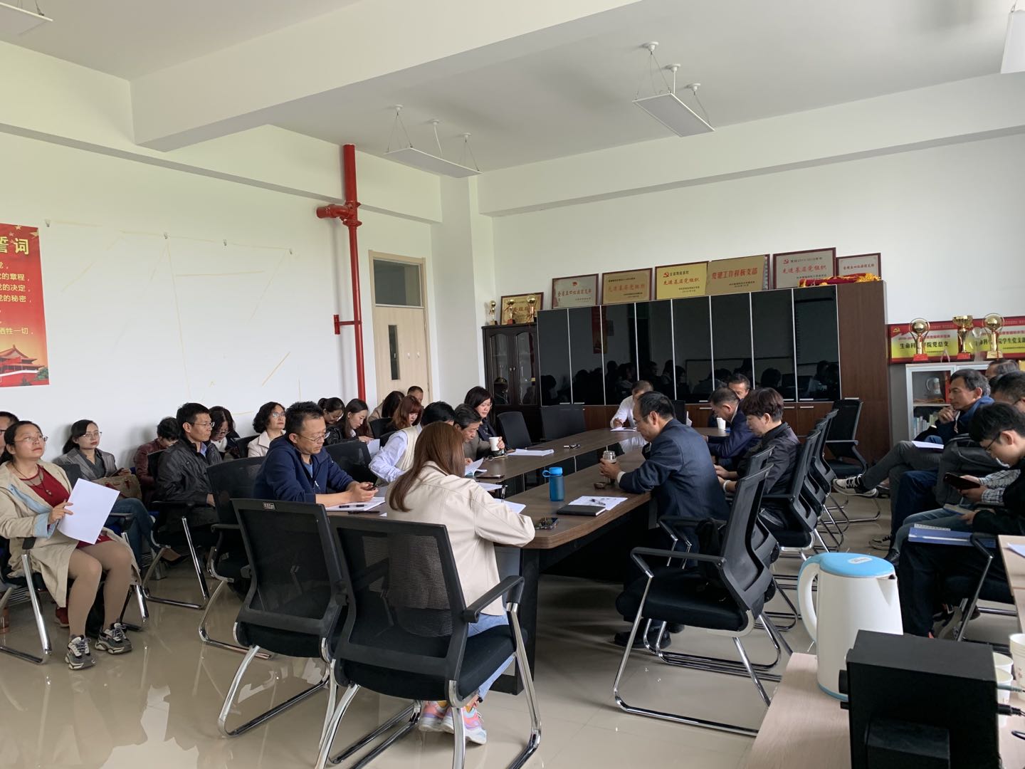 会上范建平带领大家学习了《新时代高校教师职业行为十项准则》、《世界杯8833300足球关于建立健全师德建设长效机制的实施办法》、《世界杯8833300足球教师职业行为负面清单及处理办法》等文件,通过重新学习法规政策,结合典型案例,教育全体教职工要坚定政治方向、传播优秀文化、关心爱护员工,借此专题教育学习机会让全体教职工接受一次纪律教育。