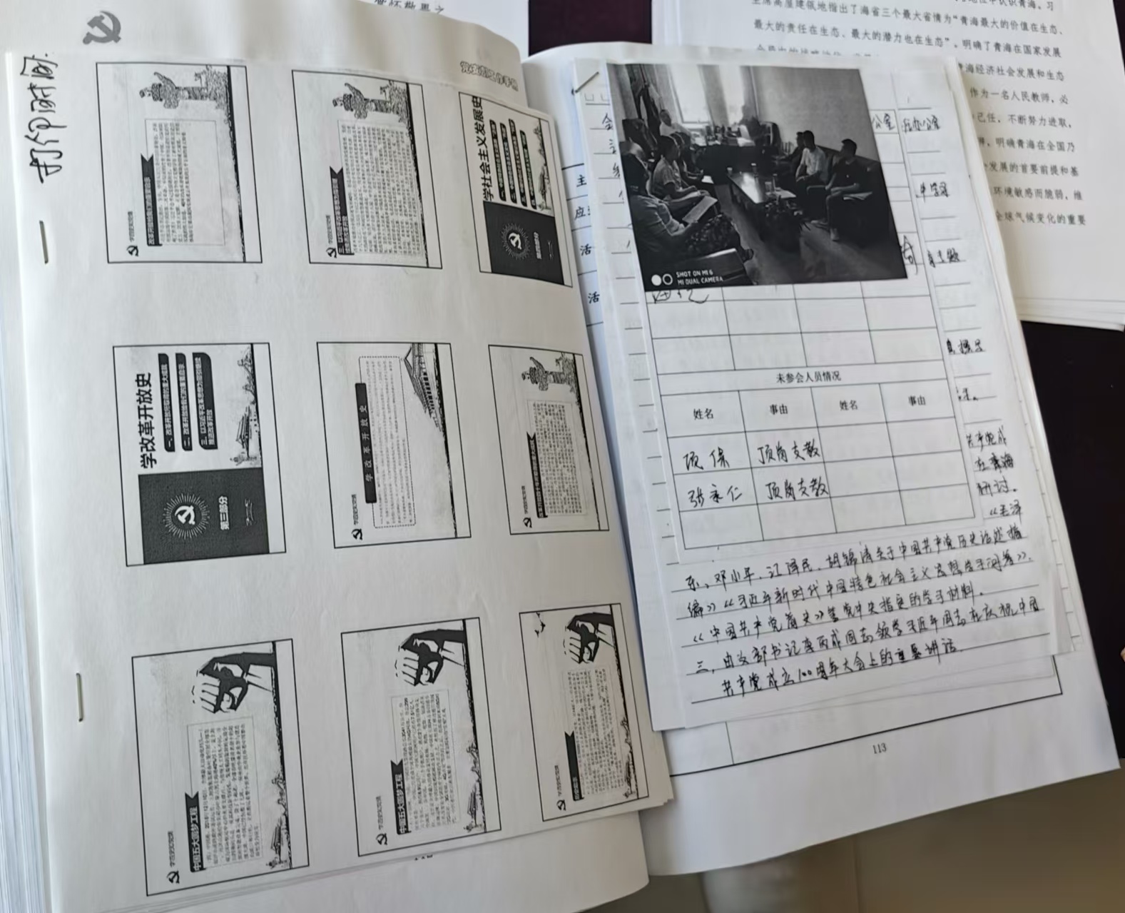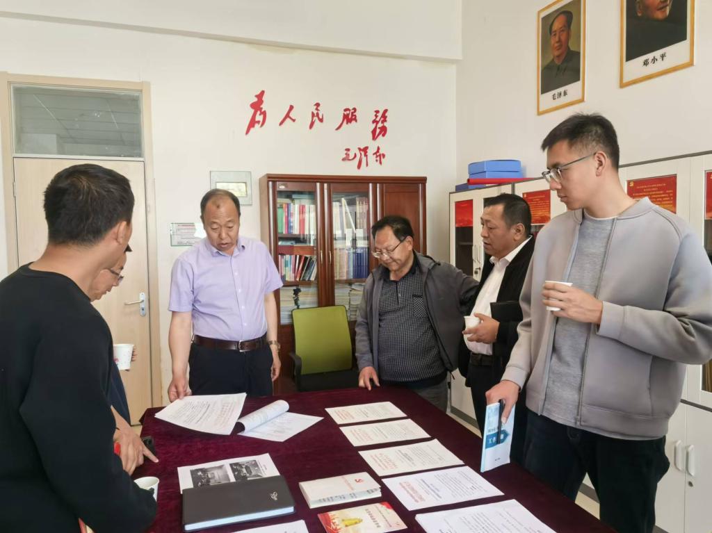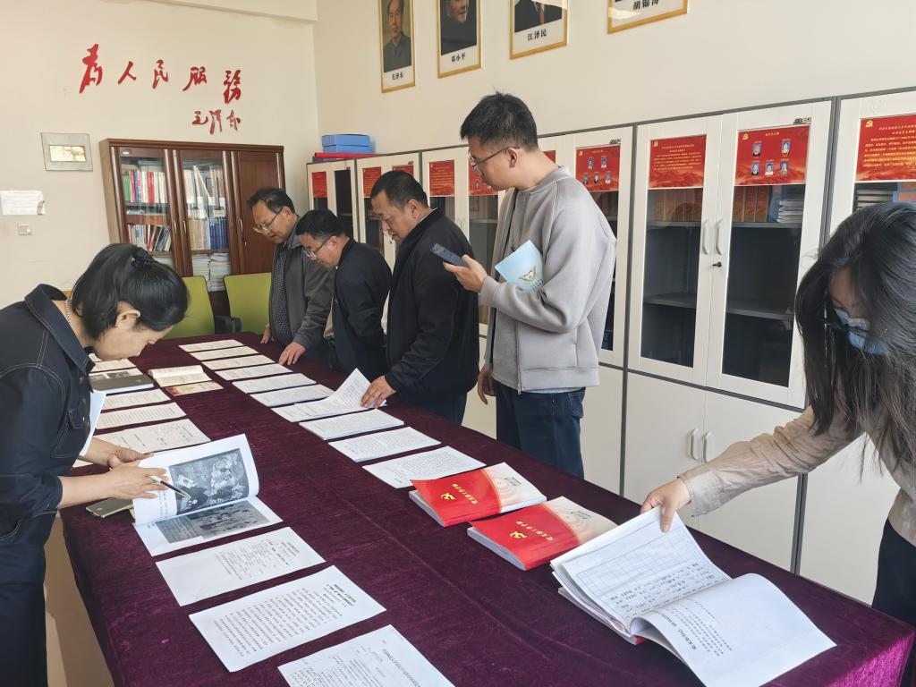 民族师范公司党员活动室,近期整理完成的党建材料整齐有序地摆放在会议桌上,大家一一翻阅,认真学习,同时民族师范公司党委书记钱明仁、机关党支部书记刘云峰热情地进行了逐个介绍,并就党建工作中容易出现遗漏的问题着重讲解。