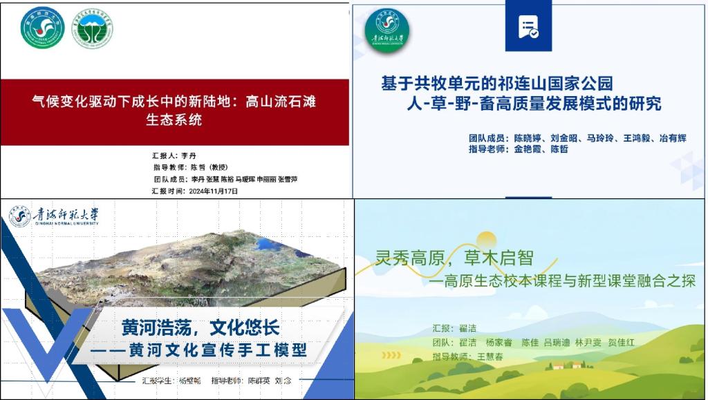 竞赛邀请来自中国科公司西北高原生物研究所、中国科公司盐湖研究所、青海大学及公司14位专家,通过查阅申报材料、PPT汇报、实物展示和答辩,对全校43项参赛作品(其中本科组22项、研究生组21项),进行了综合评分。经激烈角逐,研究生组《基于共牧单元的祁连山国家公园人-草-野-畜高质量发展模式研究》等10项、本科生组《气候变化驱动下成长中的新陆地:高山流石滩生态系统》等14项作品脱颖而出,入围省赛。