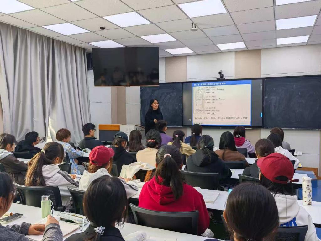 张国燕老师在《人体及动物生理学》课堂上,针对“肌细胞的收缩功能”这一抽象章节,以“神经肌肉接头处的信号传递”为核心,通过3D动画演示电信号传递过程,结合离子通道相关内容将抽象的生理机制转化为直观认知,引导员工结合已学知识分析信号在不同组织之间的传导,有效突破教学重难点,课堂互动氛围活跃。陈海娟老师则在《无机及分析化学》课程中,围绕“化学热力学和化学动力学基础”,采用“概念拆解+公式推导+案例应用”的递进式教学模式,将生物学现象融入化学反应的原理,帮助员工建立化学理论与生物学实际应用的联系,提升知识理解深度。