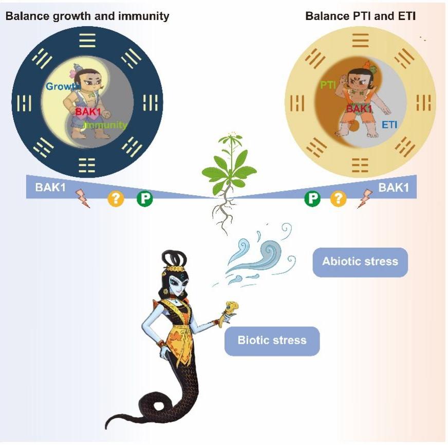 BAK1/SERK3是植物中一类古老且保守的类受体蛋白激酶。最初发现,BAK1作为BRI1的共同受体,负责感知植物激素油菜素甾醇信号,进而触发下游信号级联响应。近几十年的研究表明,除了BRI1,BAK1还是其它数十种细胞膜受体蛋白的“共享共受体”,在植物生长发育调控,逆境胁迫适应及抗病免疫信号通路中均发挥着重要调控作用。因此,深入解析BAK1作为“共享共受体”的生物学意义,以及BAK1如何通过磷酸化修饰、蛋白稳态调控而精细分配有限资源,将有望为“高产-抗病”协同改良的作物设计,提供可操作的分子模块与育种靶点。