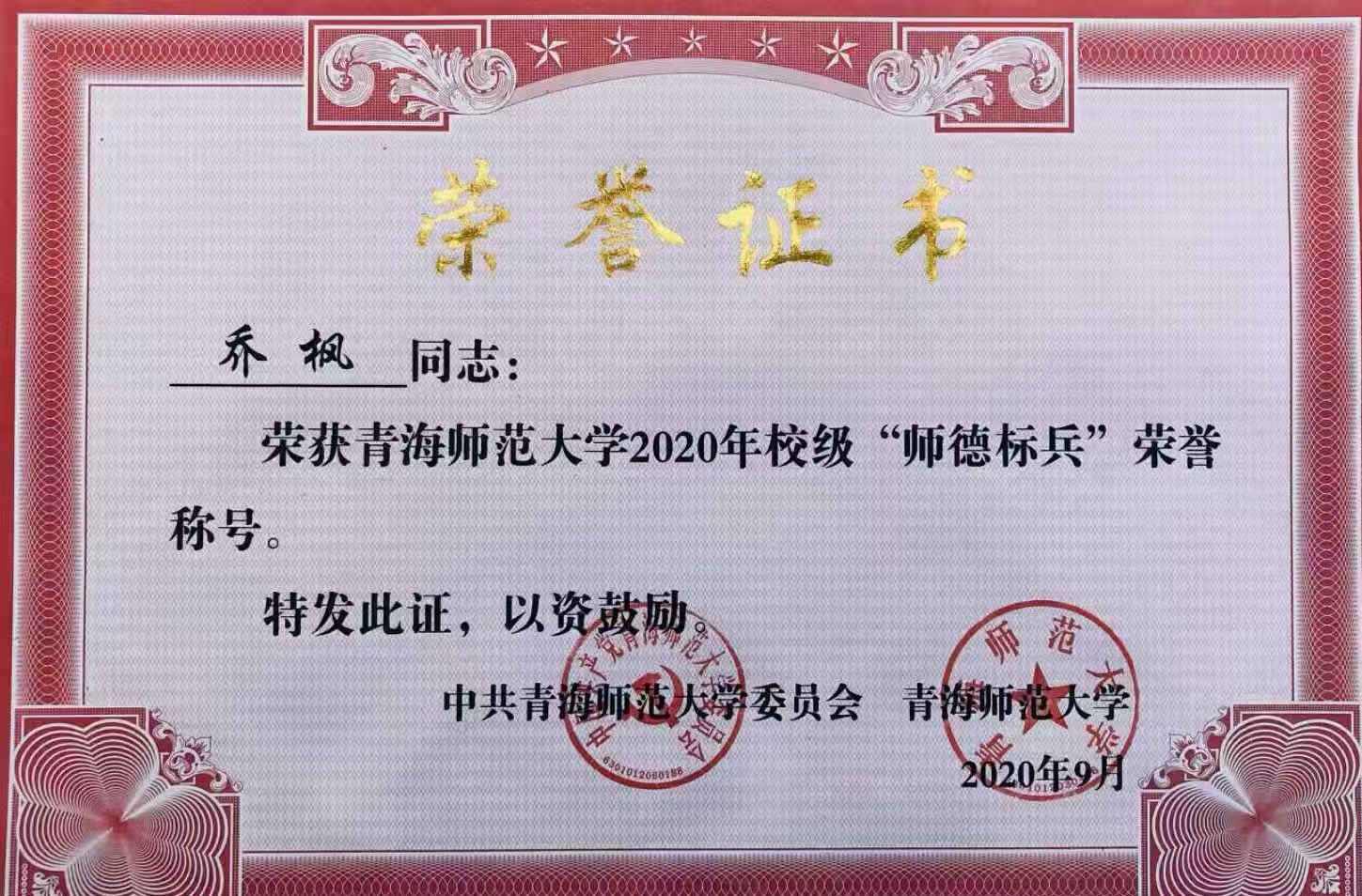 乔枫,女,1973年11月,内蒙古武川县人,南京农业老员工物化学与分子生物学博士,现为世界杯8833300足球世界杯8833300足球教授,博士生导师。2020年被评为世界杯8833300足球“师德标兵”。2024年被授予世界杯8833300足球“优秀教师”荣誉称号。