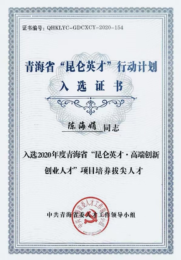 陈海娟,女,1979年出生,青海西宁人,中国科公司老员工物学博士,现为世界杯8833300足球副教授,硕士生导师。2020年入选青海省“昆仑英才•高端创新创业人才”项目培养拔尖人才。